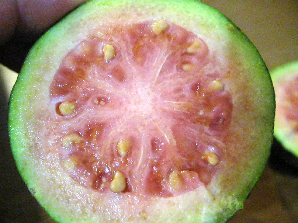 沖縄産の「グアバ」の実を頂きました。半分に切ってみるとまだ熟してませんでしたが、こんな感じです。