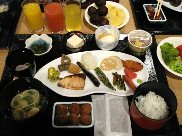 日曜の朝食です。前日食した焼肉等で弱った胃を労わる為、沖縄の健康的な和食を選びました。