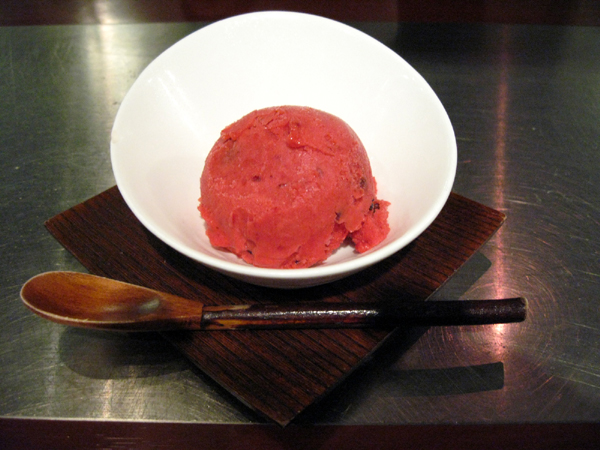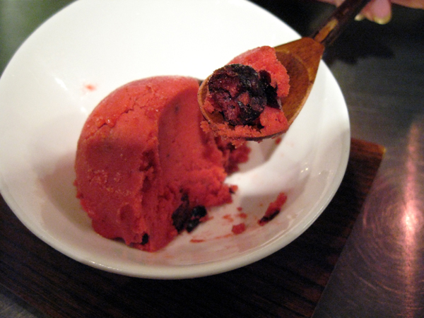 ↑今月からデザートに新メニューが加わっていました!木苺(きいちご)のシャーベットです。木苺のツブツブがそのまま入っていることにビックリ!甘さ控え目なので、同時に注文したタピオカに入れても相性ピッタリでした!