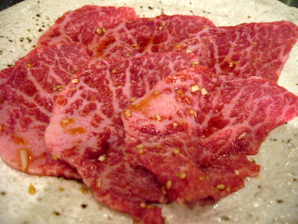 ↑まずはお決まりの「塩上カルビ」。いつ見ても、良いサシです。
