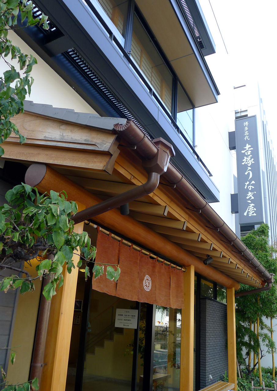 中州にある「博多名代吉塚うなぎ屋」は、明治六年創業の博多で一番古いうなぎ専門店です。お店がビルになっています。このビル、とても清潔で気持ちの良いお店です。