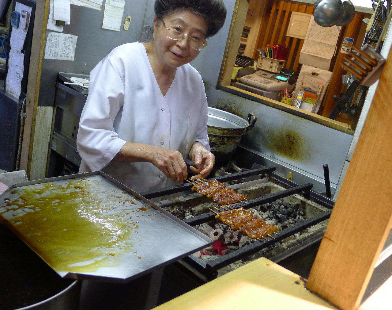 注文後、女将さんが丁寧に焼いてくれます。