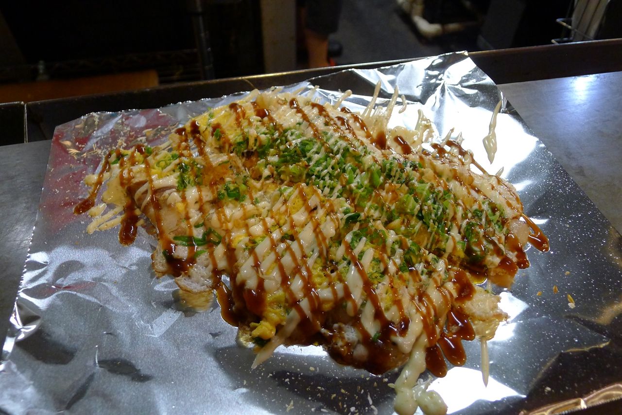 駅前に「お好み横丁」みたいなビルがあったので、その中でも評判の良い「電光石火」というお店を目当てに行ってみました。
