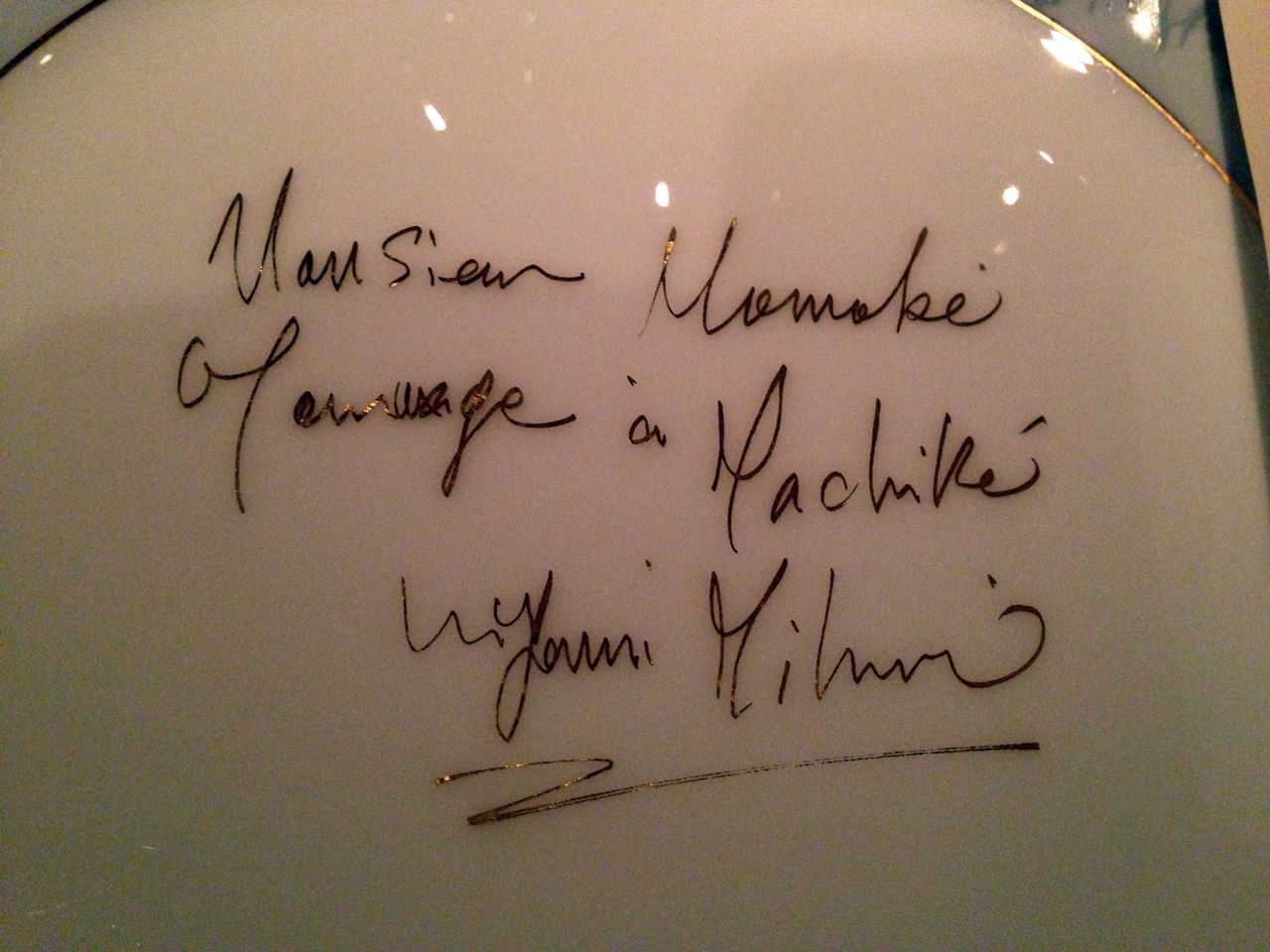 このお店では、このお皿がどうやらウェルカムプレート。ミクニシェフの直筆入りです。