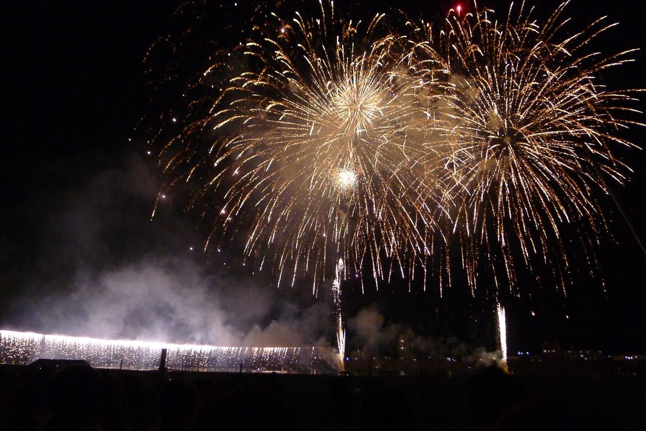 そして、最後はナイアガラです。大淀川の向こう岸まで花火が繋がります。