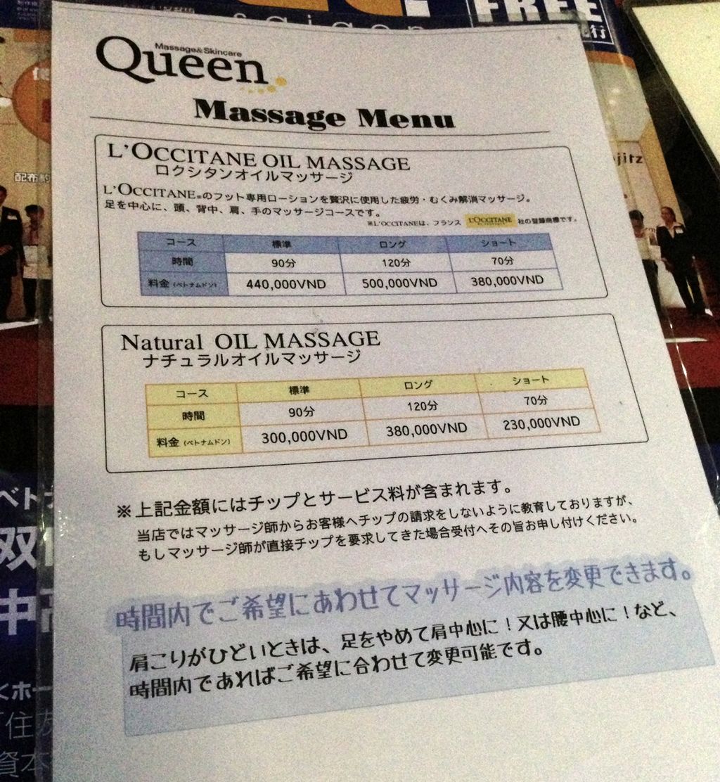 日本人経営の安心マッサージ店「Queen」 @ホーチミン・1区