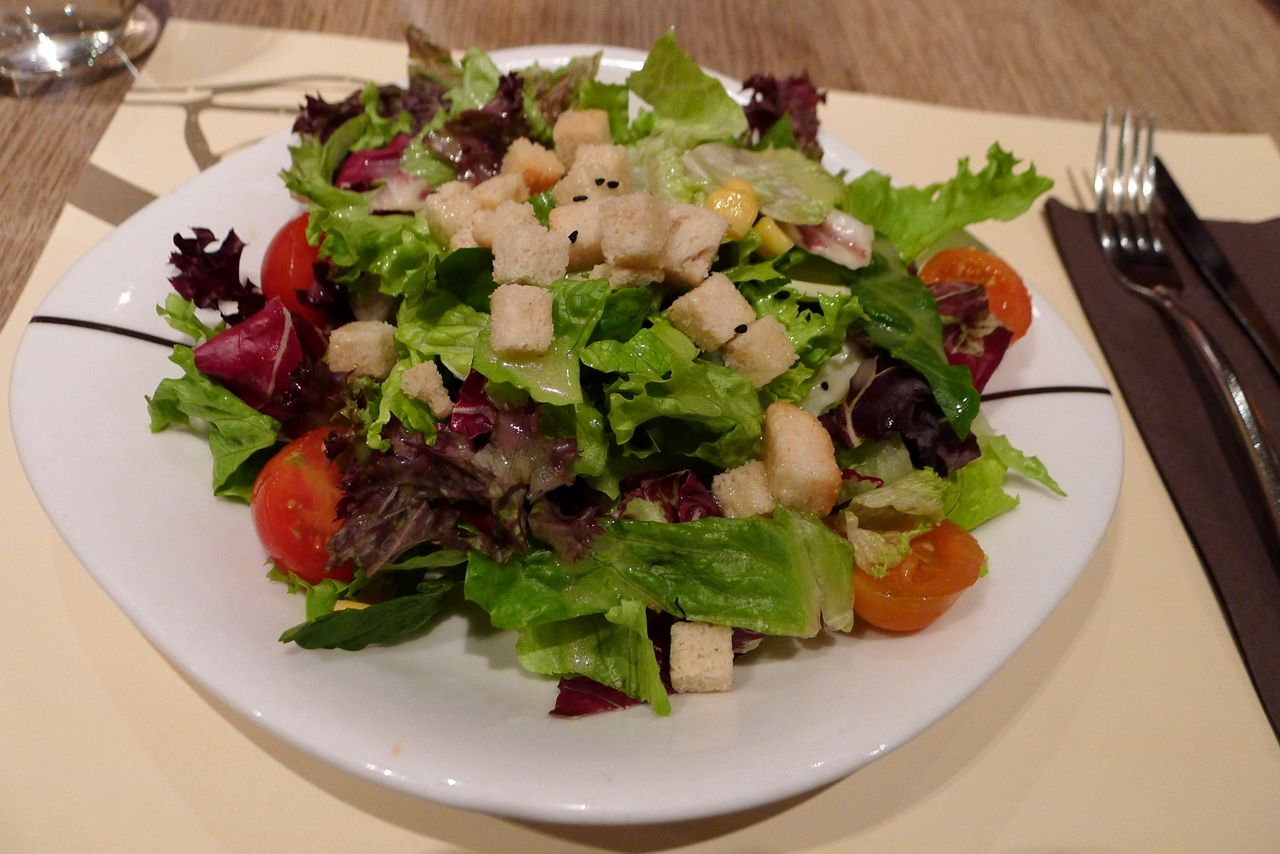 こんなに量の多いサラダも、酢とオリーブオイルのドレッシングのお陰で完食。