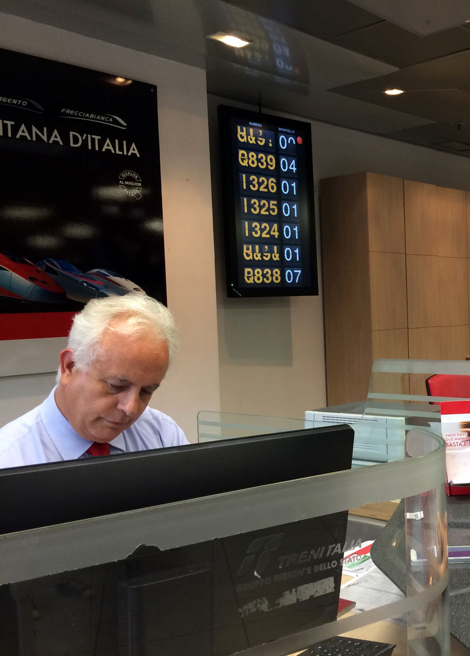 ナポリ中央駅の新幹線窓口で座席指定します。
