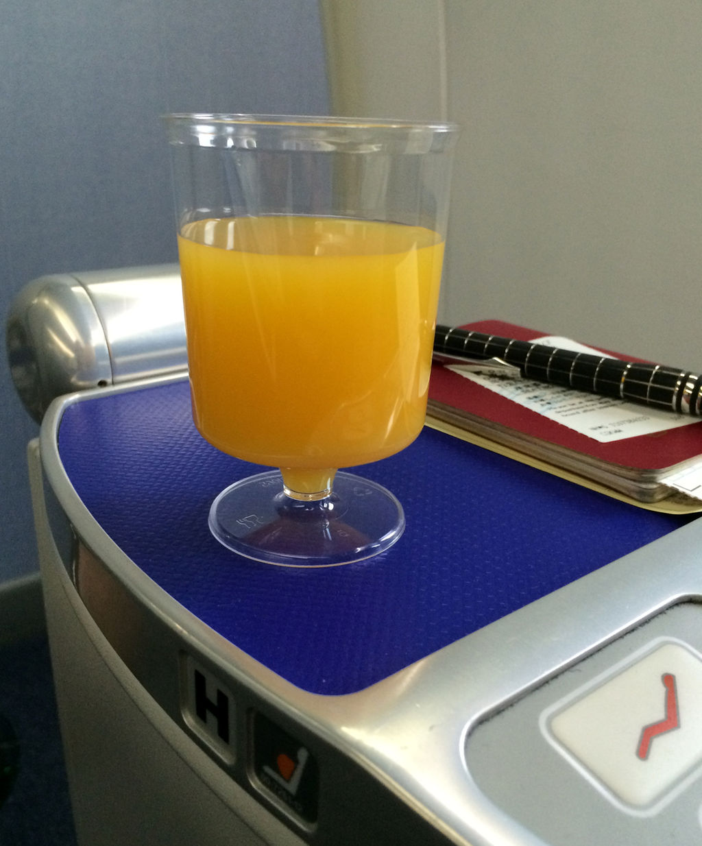 ウェルカムドリンクはオレンジジュースにしました。他の航空会社と比べ、コップが安っぽいのが残念。