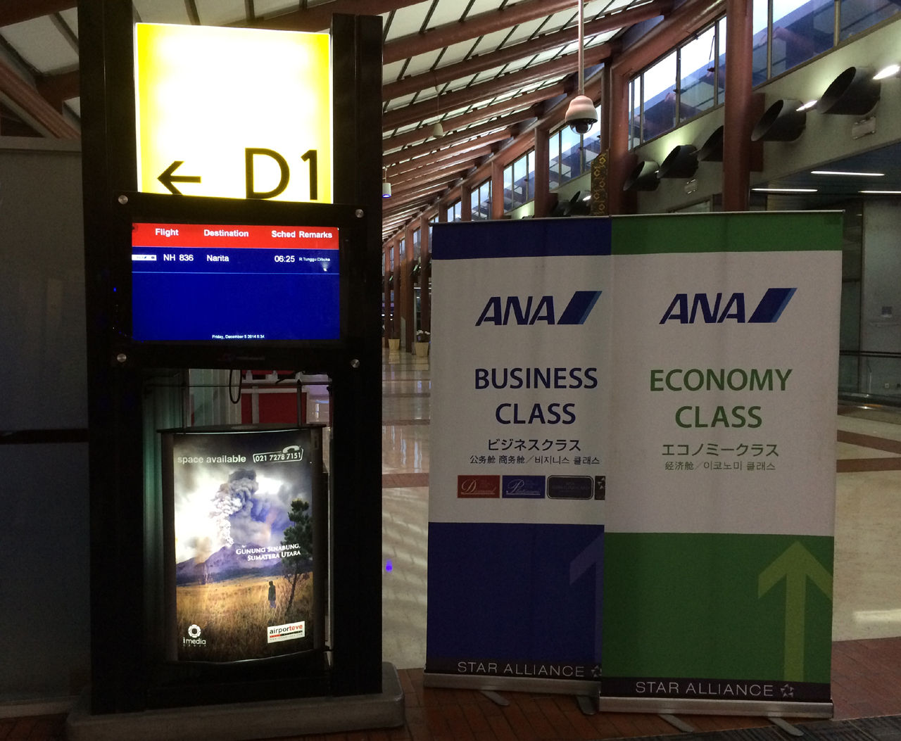 搭乗するNH836便はD1搭乗口からの出発です。