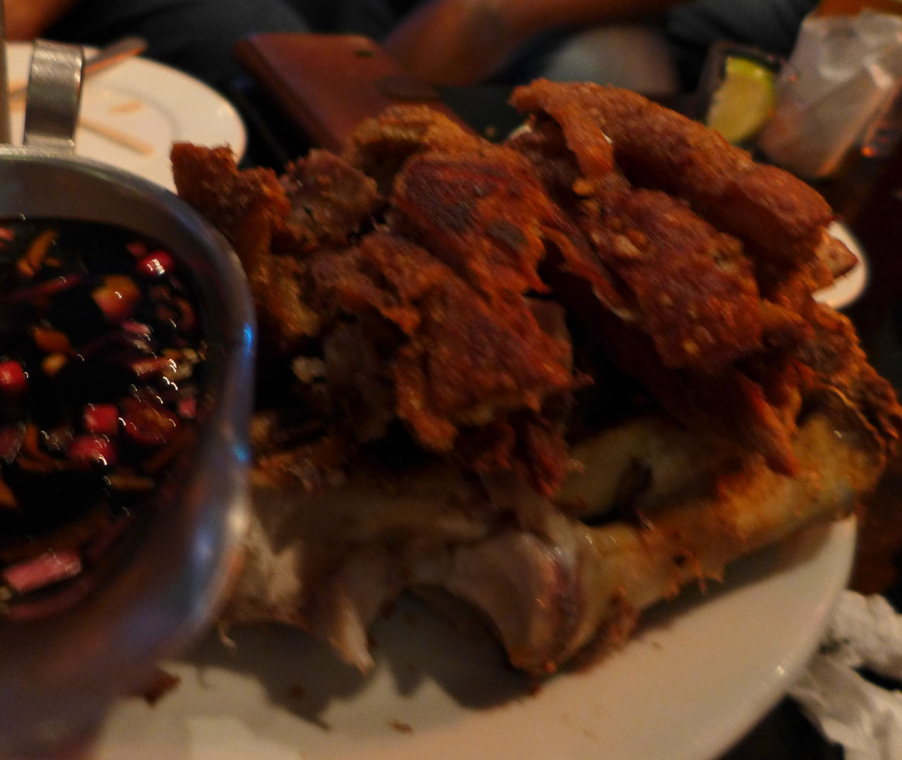 フィリピンで一般的な豚料理だそうです。カリカリにローストされたご自慢の豚料理。左のソースが豚の油っこさを上手くカバーしてます。ここで豚補給完了!
