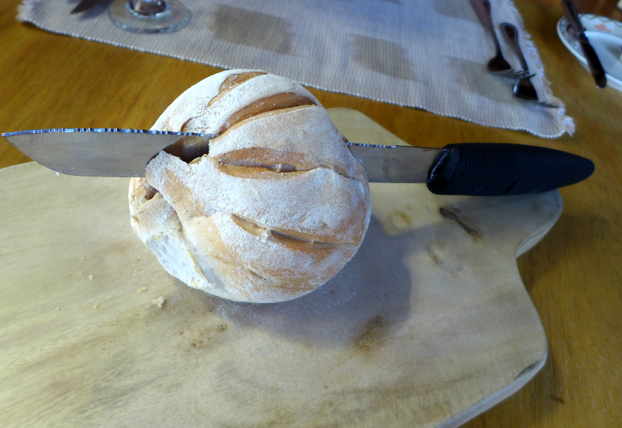 パンは焼き立てのものに、ナイフが突き刺さった状態で運ばれます。
