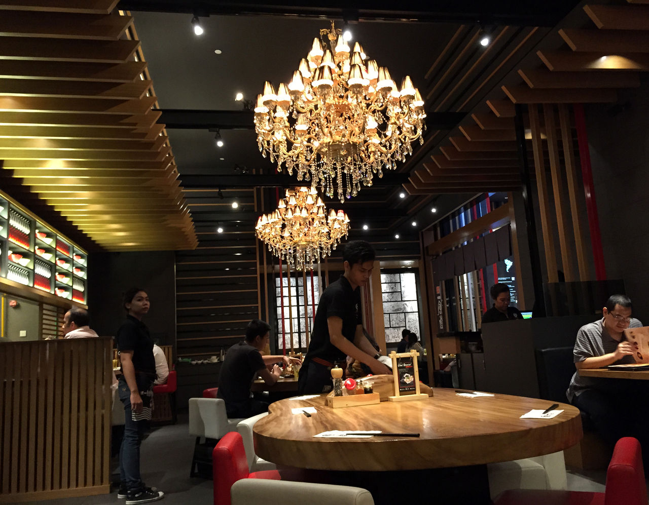 お店の内装は(一風堂の入居するショッピングモールの客層に合わせたものか)シャンデリアのあるゴージャスな雰囲気。