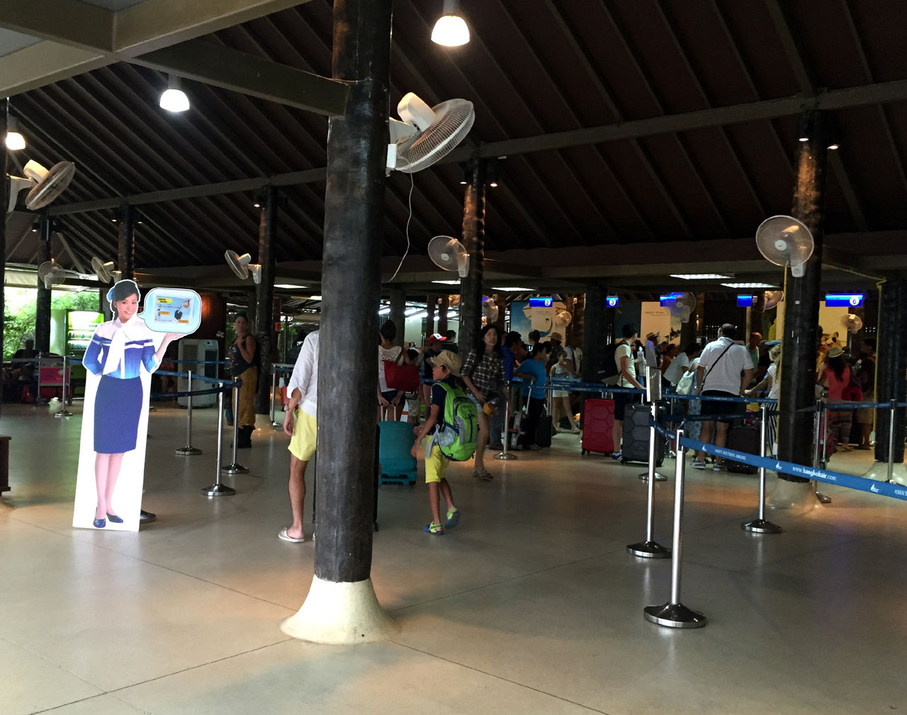 サムイ空港からは前日のフルムーンパーティーを終えた人たちがドッと空港に押し寄せて混雑していました。この日はサムイを発つどの便も満席。