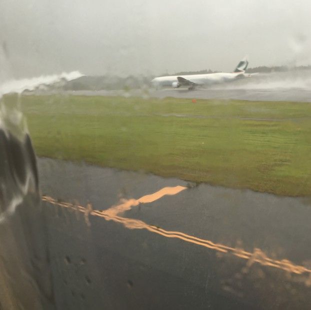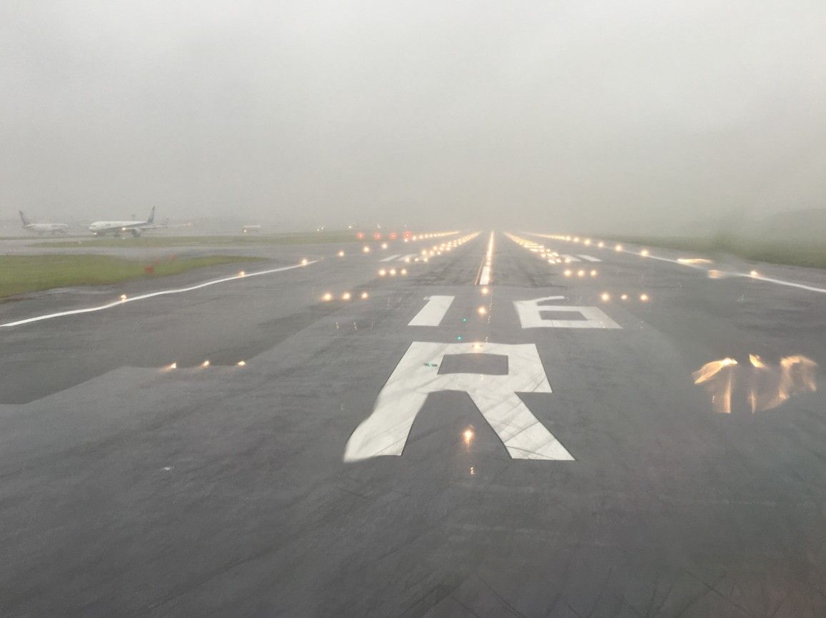 大雨の中ですが、定刻通り離陸できました。