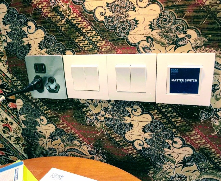 日本のコンセントがそのまま差し込めるタップもあり、一応最低限度の滞在は問題無いホテルです。