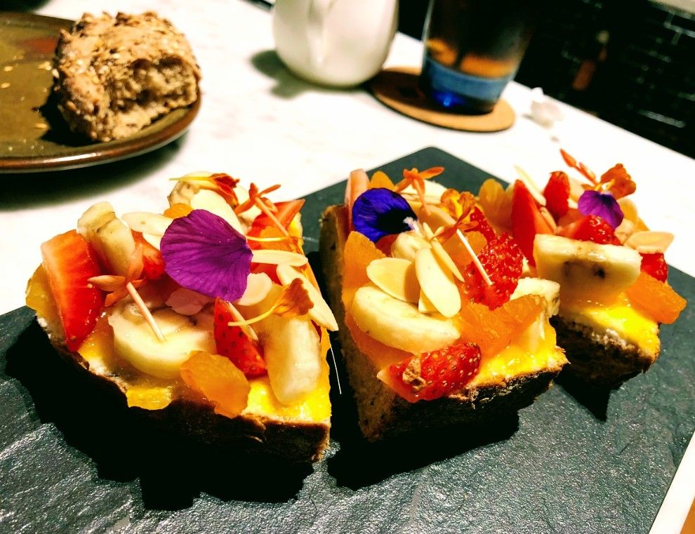 これはフルーツいっぱいのフレンチトースト。南国らしい色使いで、とても綺麗!見た目だけじゃなく、とても美味しいデザートでした。