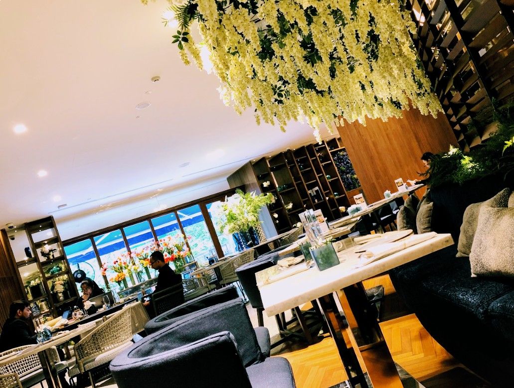 フラワーショップかと間違ってしまいますが、これがカフェ。ホテル全体に良い香りが漂っていますが、このカフェは特に生花の良い香りがします。