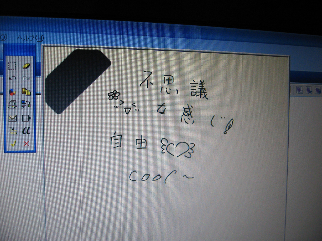 紙に描いた物が、そっくりそのまま(高い精度で)PC画面上に描かれます。イラストはテキストに変更することができませんが、高い精度が伺えます。見よ、この精度!