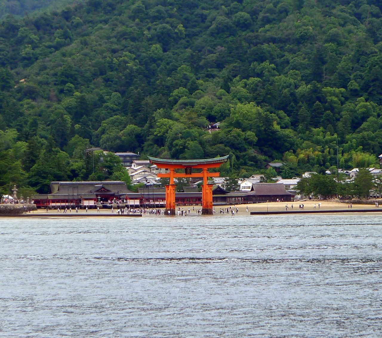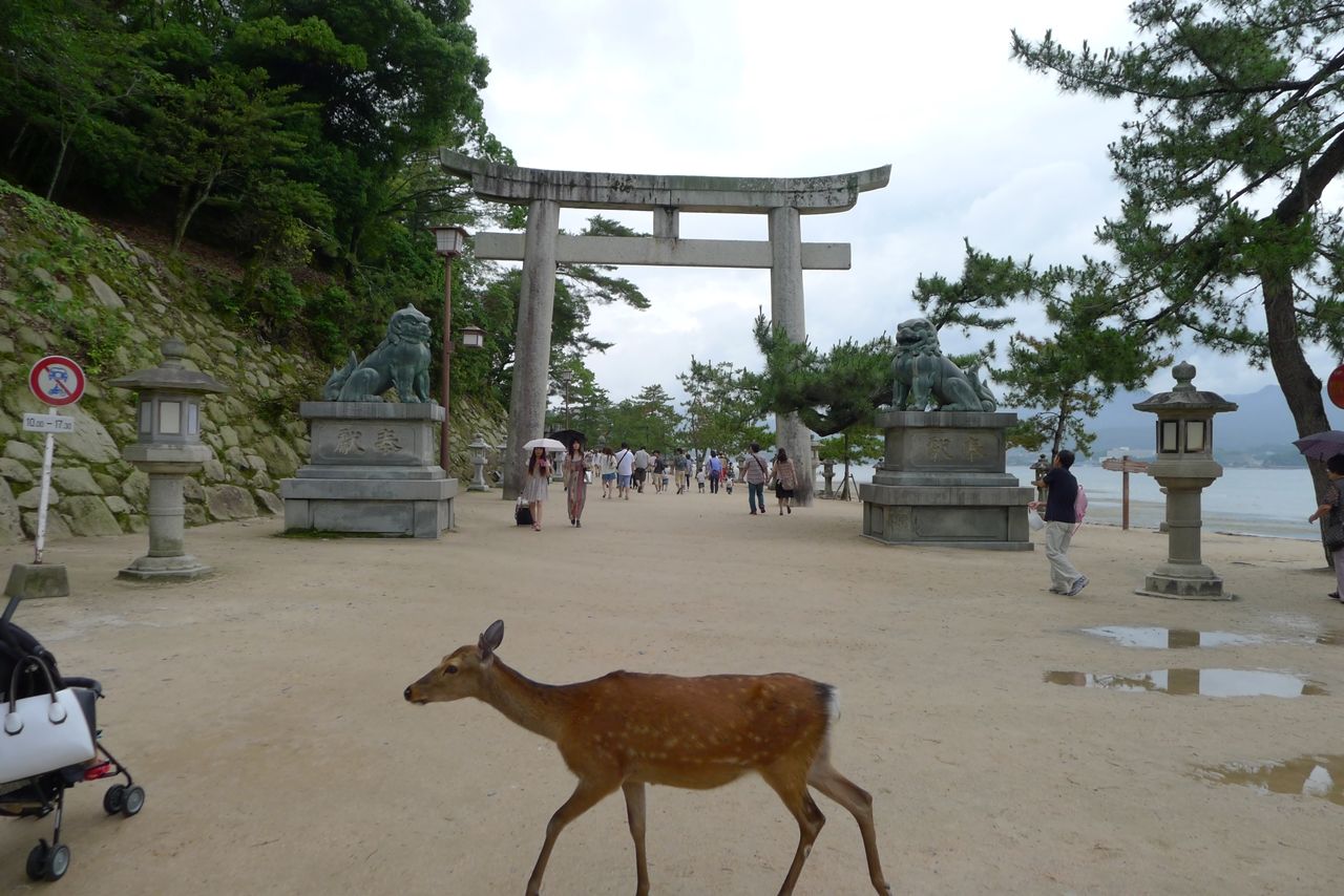 厳島神社と言えば、海の中にある大きな鳥居です。この景色を見る為には、フェリーの船着場から少し歩く必要があります。
