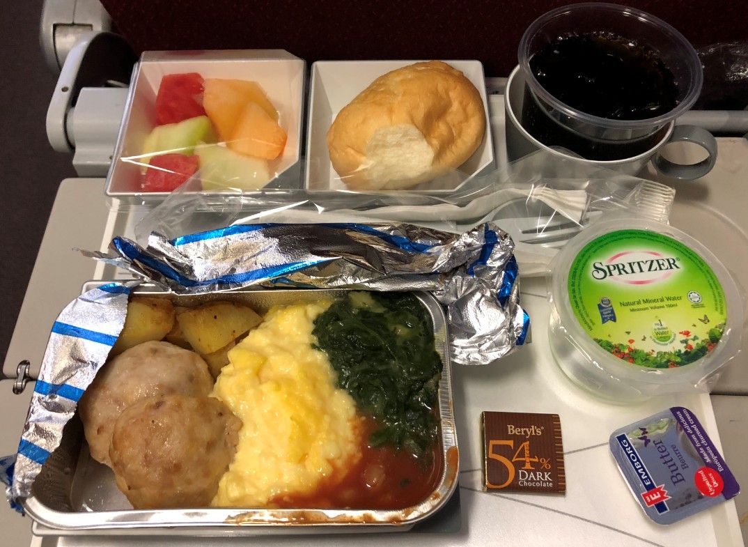 いざKLへ。飛行時間約2時間の機内食はこんな料理でした。朝から重そう。。イスラム圏では美味しい物なんて無いので、頂かず写真だけ。。。