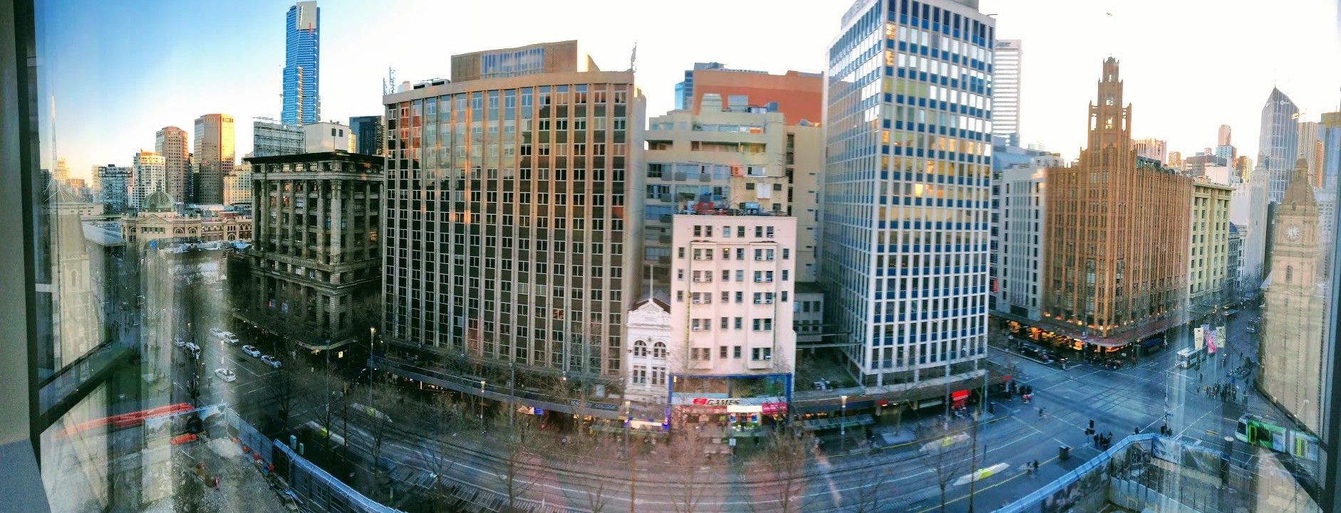 ↑ 部屋から「スワンストン通り」に向けて撮った写真ですが、下には大きな穴が掘られてました。先に見えるのが有名な「フリンダースストリート駅」。どこに行くにも便利な位置です。