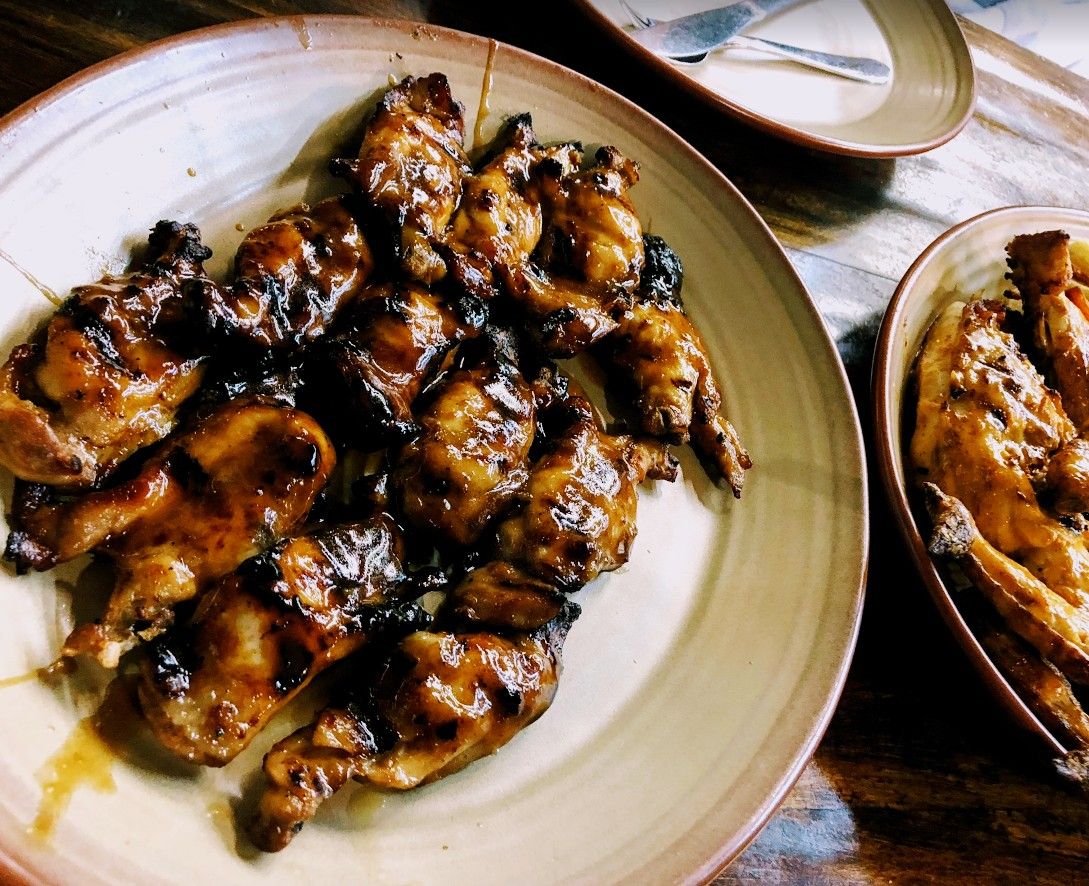 こちらは日本の焼き鳥のような甘いタレで焼いた鶏肉。サラダ類なども豊富でした。