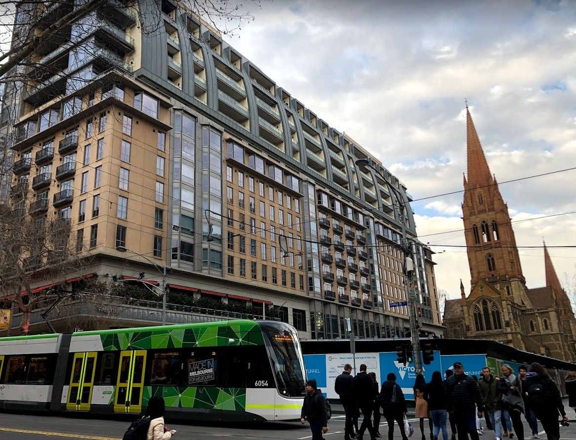 高級ブランドショップが多く並ぶコリンズ通り沿いに位置し、劇場(リージェントシアター)とほぼ直結。また、セントポール大聖堂とメルボルン市役所に挟まれた、メルボルン市の中心部にあるホテルです。