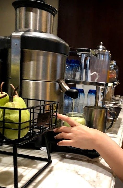 ジュースコーナーは新鮮な野菜や果物を自分で取ってジューサーにかけて作るそうです。