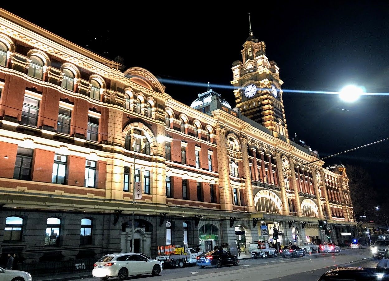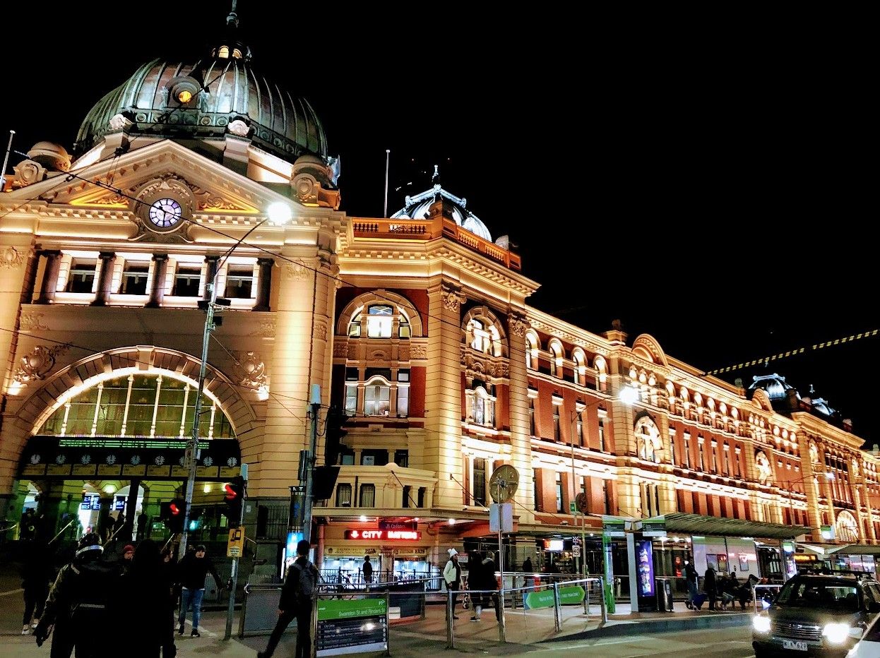 フリンダースストリート駅(Flinders Street Railway Station)の夜景です。どことなく、東京駅を思い出してしまいました。