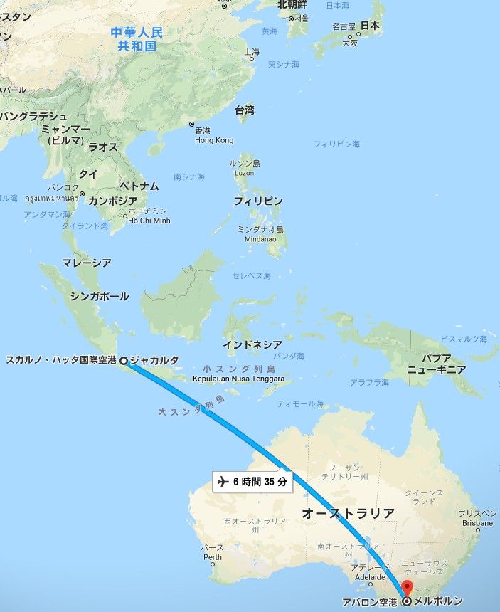 婚姻の為、人生で2回目となるメルボルンに行ってみました。今回はジャカルタからなので、地図で見るとインドネシアのすぐ下がオーストラリアとなっていて近いと思っていましたが、ジャカルタからメルボルンまでは直線でも5,200kmもあるそうです。日本からジャカルタまでの距離とほぼ同じらしい。。