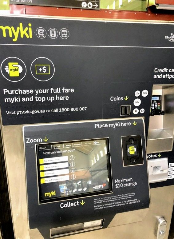 こういうマシンで"Myki"を追加することができます。